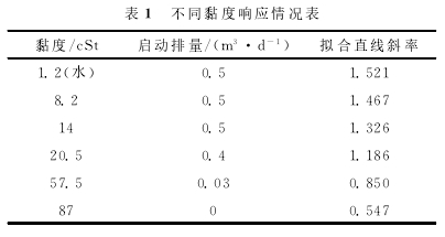 表1不同黏度響應(yīng)情況表