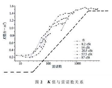 圖2K值與雷諾數(shù)關(guān)系