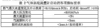在啟動氣體渦輪流量計時,應(yīng)保持相對較慢的加壓速度,如果過快的加壓將有可能損壞氣體渦輪的葉片,氣體渦輪流量計啟動的各項(xiàng)指標(biāo)要求如表2所示。