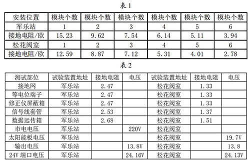 接地網(wǎng)的安裝與連接:接地網(wǎng)是整個數(shù)顯渦輪流量計防雷試驗比較關(guān)鍵的一個內(nèi)容,能不能準確的論證試驗的有效性,必須保證接地網(wǎng)達到標準的接地電阻,通過對實地地電阻率的測試,初步選擇6個接地模塊埋設并配用降阻劑使用,邊安裝邊測試直到達到標準值后才引入等電位箱。在軍樂站和松花閥室安裝模塊并測試數(shù)據(jù)見表1。