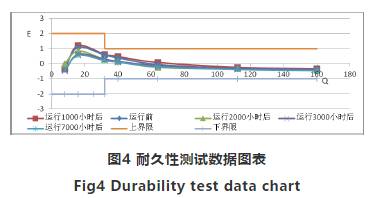 整個(gè)耐久性測(cè)試以DN80-G100 樣機(jī)為例進(jìn)行說(shuō)明,*先是將三臺(tái)樣機(jī)分別安裝在不同安裝位置的同一管道中,其管道是由0.8 MPa 壓縮氣體為介質(zhì)以樣機(jī)*大流量進(jìn)行循環(huán)運(yùn)行,以每1 000 h 為運(yùn)行周期將樣機(jī)拆卸并在標(biāo)準(zhǔn)氣體流量裝置做相應(yīng)性能測(cè)試,經(jīng)過(guò)7 000 h 運(yùn)行如圖4 所示。