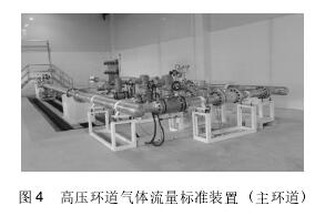 高壓環(huán)道氣體流量標(biāo)準(zhǔn)裝置,如圖4所示,該裝置可在實(shí)際工作的壓力狀態(tài)下檢測(cè)流量計(jì)的性能,主要部件都來(lái)自德國(guó),是國(guó)內(nèi)*臺(tái)閉環(huán)式高壓氣體裝置。其流量范圍為1~2500m3/h,檢測(cè)口徑為DN20~DN250,工作壓力范圍為0.1~2.0MPa,不確定度為0.33%。目前,我司的高壓環(huán)道裝置已將量傳到歐洲VSL國(guó)際標(biāo)準(zhǔn)實(shí)驗(yàn)室,也正在申請(qǐng)國(guó)內(nèi)取證和建標(biāo),并且正在和浙江省院以及中國(guó)計(jì)量院做實(shí)驗(yàn)對(duì)比工作。采用該套裝置進(jìn)行壓力為0.1MPa、0.8MPa和2.0MPa的檢定。