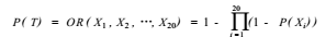 將上表底事件發(fā)生的概率代入P(T)的計(jì)算公式,則得頂事件發(fā)生的概率為: