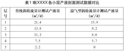 (2)層段的產(chǎn)液量未達(dá)到儀器啟動(dòng)排量時(shí)溢氣型氣體渦輪流量表仍舊無(wú)法測(cè)量,因此研制低啟動(dòng)排量的渦輪傳感器仍舊迫在眉睫。