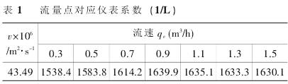 實驗測得在流體介質的粘度為43.49cSt條件下,DN10口徑的渦輪流量傳感器在各個實驗流量點的儀表系數(shù)Ki如表1所示。