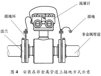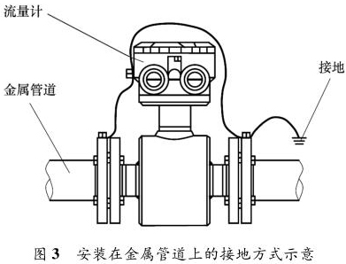 焦油流量計安裝在金屬管道上,安裝時將金屬管道與焦油流量計相連接,接地線再接入接地網(wǎng),如圖 3 所示。