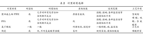 純化水流量表要根據(jù)被測(cè)流體的溫度、壓力、速度以及含固顆粒的硬度、含量和粒徑大小來(lái)決定測(cè)量管內(nèi)襯的材質(zhì)。該濕法磷酸裝置中,純化水流量表測(cè)量管襯里材質(zhì)的種類見表 2。