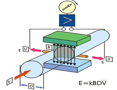 耐高溫水流量計(jì)工作原理是法拉*電磁感應(yīng)定律,即導(dǎo)體在磁場中切割磁力線運(yùn)動時,在導(dǎo)體兩端會感應(yīng)一個與磁場方向和導(dǎo)體運(yùn)動方向相互垂直的感應(yīng)電動勢。感應(yīng)電動勢的大小與感應(yīng)強(qiáng)度和運(yùn)動速度成正比。導(dǎo)電性液體在垂直于磁場的非磁性測量管內(nèi)流動,與流動方向垂直的方向上產(chǎn)生與流量成比例的感應(yīng)電勢,其值如下式: