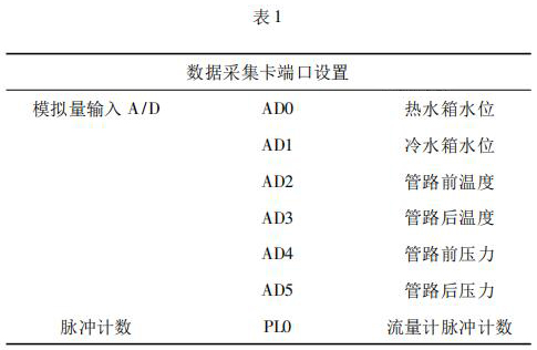 數(shù)據(jù)采集系統(tǒng)由工控機、雙氧水流量計以及數(shù)據(jù)采集卡組成。 4000 次冷熱沖擊試驗要求在在*大流量 qs 條件下運行,對流量數(shù)據(jù)的采集用到雙氧水流量計及數(shù)據(jù)采集卡。雙氧水流量計采集管路流量,數(shù)據(jù)采集卡將雙氧水流量計采集到的數(shù)據(jù)反饋給工控機系統(tǒng)。過程中,試驗管路水溫以及水箱水位的采集控制也是通過數(shù)據(jù)采集卡反饋給系統(tǒng)控制。試驗過程用到的數(shù)據(jù)采集卡采用研華生產(chǎn)的PCI - 1711。PCI - 1711 是一款多功能 PCI 總線數(shù)據(jù)采集卡,具有 16 路單端模擬量輸入功能、2 路 12位模擬量輸出功能、16 路數(shù)字輸入和 16 路數(shù)字輸出功能、計數(shù)器功能等。為保證冷熱沖擊試驗結(jié)果的準確性,嚴要求嚴格控制管路流量以及管路壓力。因此,管路設(shè)置前后管路溫度、冷熱水箱水位以及管路壓力的采集,管路流量根據(jù)雙氧水流量計脈沖計數(shù)進行采集,其數(shù)據(jù)采集卡端口設(shè)置如表 1 所示。