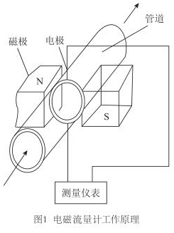 冷卻水流量計(jì)是應(yīng)用電磁感應(yīng)定律,即:導(dǎo)電體在磁場(chǎng)中運(yùn)動(dòng)產(chǎn)生感應(yīng)電動(dòng)勢(shì),而感應(yīng)電動(dòng)勢(shì)又和流量大小成正比,通過(guò)測(cè)電動(dòng)勢(shì)來(lái)反映管道流量的原理而制成的,用來(lái)測(cè)量導(dǎo)電流體的體積流量(見(jiàn)圖1)。工業(yè)上多用以測(cè)量水、礦漿、各種酸、堿、鹽等腐蝕液體等介質(zhì)的流量。