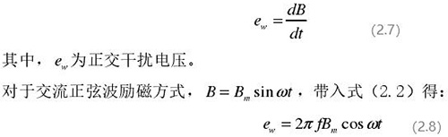 從上圖 2.5 中可以觀察到兩個(gè)電*、勵(lì)磁線圈、轉(zhuǎn)換器內(nèi)阻之間形成了一個(gè)閉合回路,將此回路稱之為初級繞組,從理論上進(jìn)行分析,磁力線 B 應(yīng)當(dāng)平行于勵(lì)磁線圈所產(chǎn)生的磁感應(yīng)線,但在實(shí)際的應(yīng)用過程中由于工藝差異,因此無法達(dá)到理想狀態(tài),會(huì)產(chǎn)生磁力線穿過勵(lì)磁線圈磁感應(yīng)線的情況,此時(shí)將會(huì)產(chǎn)生相應(yīng)的感應(yīng)電動(dòng)勢,將此部分感應(yīng)電動(dòng)勢稱為變壓器效應(yīng)。此效應(yīng)同樣滿足于楞次定律,利用楞次定律進(jìn)行計(jì)算可得如下電動(dòng)勢: