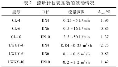 其中,0.75<K<1.2。在此基礎(chǔ)上,每次試驗過程中,根據(jù)流量計的流量范圍,選取9個流量點,每個流量點校準(zhǔn)3次。流量計的銘*信息及直管段口徑選擇詳見表1。