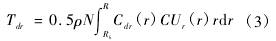 通過(guò)對(duì)輪轂半徑Rh到葉頂半徑Rt的驅(qū)動(dòng)力矩進(jìn)行積分可以獲得作用在整個(gè)葉片上的驅(qū)動(dòng)力矩Tdr(不含黏性影響):