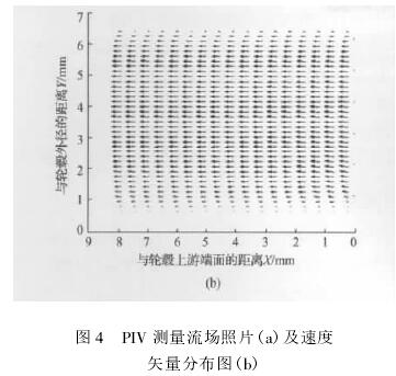 通過(guò)對(duì)PIV實(shí)驗(yàn)中所拍攝的照片(見(jiàn)圖4(a))進(jìn)行后處理,可以得到各個(gè)流量點(diǎn)下輪轂與管壁之間軸截面流場(chǎng)軸向速度分布信息如圖4(b)所示。鑒于試驗(yàn)?zāi)P偷妮S對(duì)稱性,從原理上說(shuō)該軸截面的速度分布可以推廣到周向環(huán)形區(qū)域。
