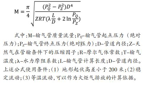 天津 LNG 設(shè)置兩座衛(wèi)生型渦輪流量計,單臺設(shè)計處理量 60t/h, 兩臺火炬并列運行,一用一備。自 LNG 儲罐及 BOG 系統(tǒng)來的超壓 BOG 經(jīng) PV 閥后進(jìn)入火炬氣排放總管,經(jīng)分液罐沉淀 BOG 中夾雜的液滴后進(jìn)入火炬燃燒放空。 衛(wèi)生型渦輪流量計設(shè)置四級排放,具體設(shè)置如表 1。 2 火炬氣排放量計算方法根據(jù)水平輸氣管流量計算基本公式: