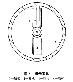 為了降低啟動流量,把圖4中的軸架順時針旋轉(zhuǎn)90°,軸架為水平位置如圖5所示。這樣,上、下葉片都受到氣流作用,則*小啟動流量為3.7m³/h。由此看出,軸架水平安裝較好,不但所需的啟動流量較小,亦可達(dá)到擴大量程范圍的目的。