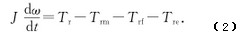 式(2)中:J—葉輪的轉(zhuǎn)動慣量;t—時(shí)間;ω—葉輪的轉(zhuǎn)速;Tr—推動力矩;Trm—機(jī)械摩擦阻力矩;Trf—流動阻力矩;Tre—電磁阻力矩。