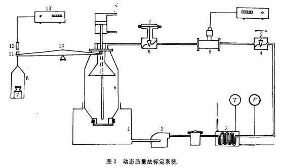 由于靜態(tài)法必須等待容器中的液體靜止后才能測量,另外容器中不能存在殘留液體,所以效率低,動態(tài)標(biāo)定法是在液體流動情況下進(jìn)行質(zhì)量或容積測量:一般先把容積或質(zhì)量固定,只測量時間,操作簡便,效率高。圖2為1種動態(tài)質(zhì)量法標(biāo)定系統(tǒng),可在連續(xù)運(yùn)行狀態(tài)下對流量計(jì)進(jìn)行標(biāo)定。其工作過程為:打開主泵2.使油液在回路中循環(huán);調(diào)節(jié)油溫控制器3.使油液達(dá)到標(biāo)定溫度;調(diào)節(jié)流量調(diào)節(jié)閥4.使被校流量計(jì)5.指示標(biāo)定刻度;流場穩(wěn)定后先在祛碼盤8中加起始質(zhì)量祛碼,秤10失去平衡;按標(biāo)定按鈕,計(jì)量油箱6底部放泄閥關(guān)閉、計(jì)時、計(jì)數(shù)器13回零,開始充液;隨著計(jì)量油箱中油液增加達(dá)到起始質(zhì)量時,秤10恢復(fù)平衡,執(zhí)行元件11觸發(fā)傳感器12.使計(jì)時、計(jì)數(shù)器13開始計(jì)時計(jì)數(shù);再將一標(biāo)準(zhǔn)質(zhì)量砝碼加于砝碼盤8中,秤10又失去平衡;繼續(xù)充液,當(dāng)*二次達(dá)到平衡時,再次觸發(fā)傳感器12.使計(jì)時、計(jì)數(shù)器停止工作。由所計(jì)時間t和質(zhì)量即可求出質(zhì)量流量。一個循環(huán)結(jié)束后,放泄閥自動打開,計(jì)量油箱中的油液放到主油箱1中.整個標(biāo)定過程中,只需人工調(diào)節(jié)流量閥,加2次固定質(zhì)量的標(biāo)準(zhǔn)祛碼。每次循環(huán)時間1~2min,效率較高。另外計(jì)量油箱全部質(zhì)量支在秤上,不與管路系統(tǒng)有剛性連接,因此精度高。為了防止油液沖擊影響測量精度,計(jì)量油箱中采取了防沖擊措施。