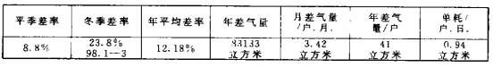 從謙益里96、97年計量統(tǒng)計資料分析:97年6月-11月份夏秋季平均差率8.8%,98年l-3月份冬季平均差率23.8%,97年6月-98年5月一年平均差率12.18%,年供銷差氣量83133立方米。根據該站年差氣量83133立方米和該站2000戶 用戶測算,可得出平均每戶每年差氣量41立方米和平均每戶每月差氣量3.42立方米的結論,依此推算全公司22萬戶用戶年差氣量約達902萬立方米,折人民幣631萬元,月差氣量75.2萬立方米,折人民幣52.6萬元。