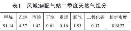 2015年7月,新疆油田公司風(fēng)城3#配氣站的渦輪流量計(jì)在現(xiàn)場(chǎng)驗(yàn)收時(shí)就進(jìn)行了此項(xiàng)內(nèi)容的驗(yàn)證,對(duì)該站在用的3套分體式溫壓補(bǔ)償型氣體渦輪流量計(jì)(雙顯示式)分別選取了3組數(shù)據(jù)(工況壓力、工況溫度、工況壓縮系數(shù)、標(biāo)況壓縮系數(shù)、工況流量、標(biāo)況流量),將流量計(jì)測(cè)量的標(biāo)況流量與由氣態(tài)方程計(jì)算出的理論標(biāo)況流量進(jìn)行對(duì)比,得出兩者誤差,根據(jù)誤差判斷在傳輸過(guò)程的失真程度。按**標(biāo)準(zhǔn)要求對(duì)風(fēng)城3#配氣站取樣得到的天然氣組分報(bào)告,詳細(xì)數(shù)據(jù)如表1所示。根據(jù)表1中的天然氣組分,以及介質(zhì)的工作壓力、工作溫度可計(jì)算出工況壓縮系數(shù)Zg,根據(jù)**標(biāo)準(zhǔn)中天然氣標(biāo)準(zhǔn)參比條件,可計(jì)算出標(biāo)況壓縮系數(shù)Zn。