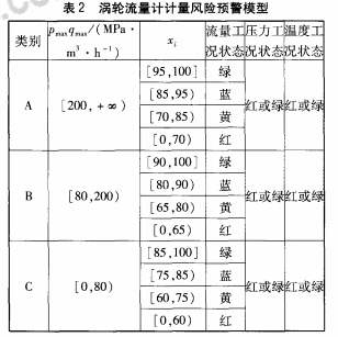 ②建立以監(jiān)測流量傳感器工況為主要目標(biāo)、溫度傳感器工況和壓力傳感器工況為輔助目標(biāo)的渦輪流量計(jì)計(jì)量風(fēng)險(xiǎn)預(yù)警體系,其基礎(chǔ)模型見表2。