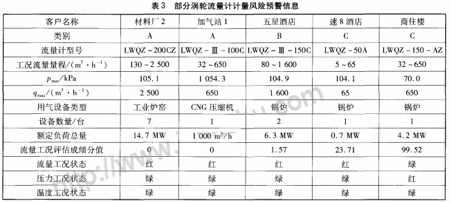 表3是建立渦輪流量計(jì)計(jì)量風(fēng)險(xiǎn)預(yù)警系統(tǒng)后,得到的部分渦輪流量計(jì)計(jì)量風(fēng)險(xiǎn)預(yù)警信息。